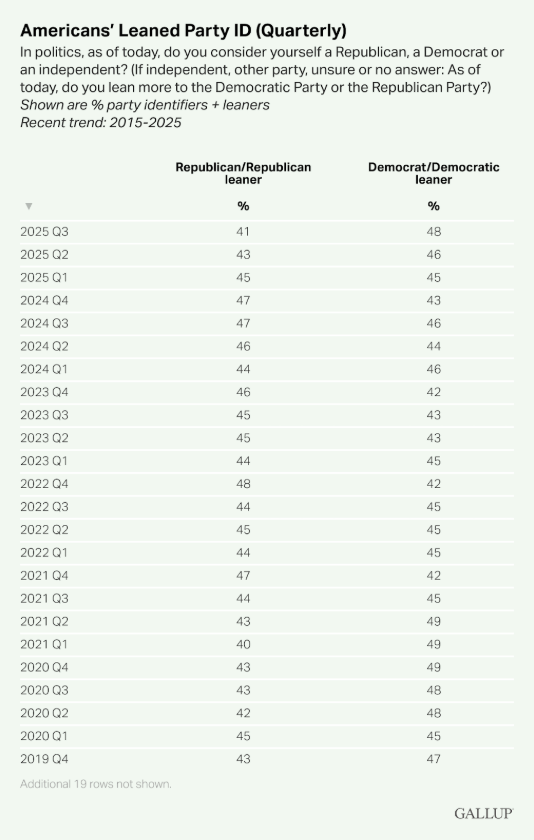 The Bottom Line: The more partisan our politics becomes; the more average Americans move away from either political party. It will be important to watch this trend going into the 2026 midterms to see if more and more voters lean Democrat.