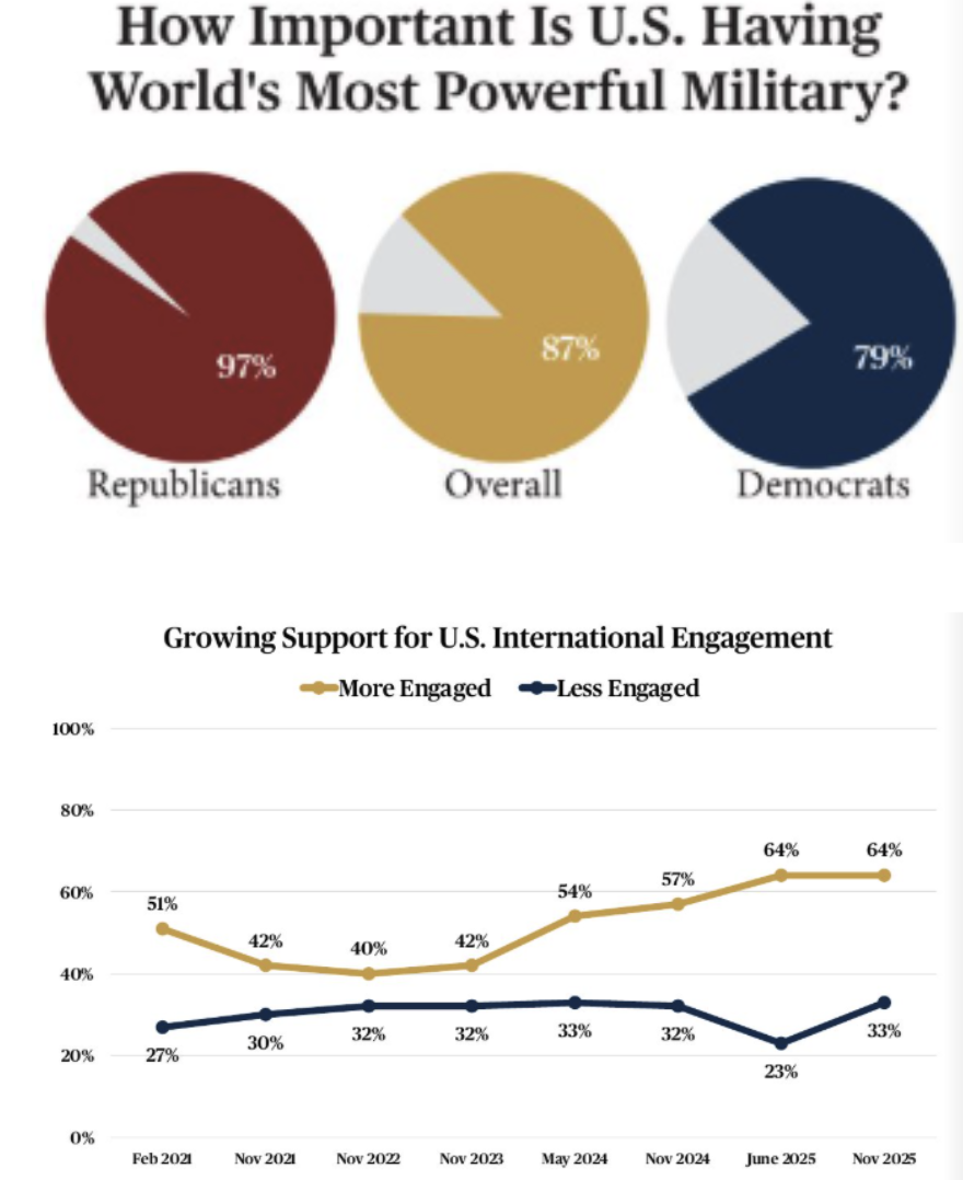 The Bottom Line: Social media is especially loud when it comes to debates around foreign policy and America’s place in the world. The Reagan Foundation found that what happens online is not necessarily real life. Americans, even those self-identifying as MAGA “America First” Republicans, believe a strong United States is essential for world peace and order.